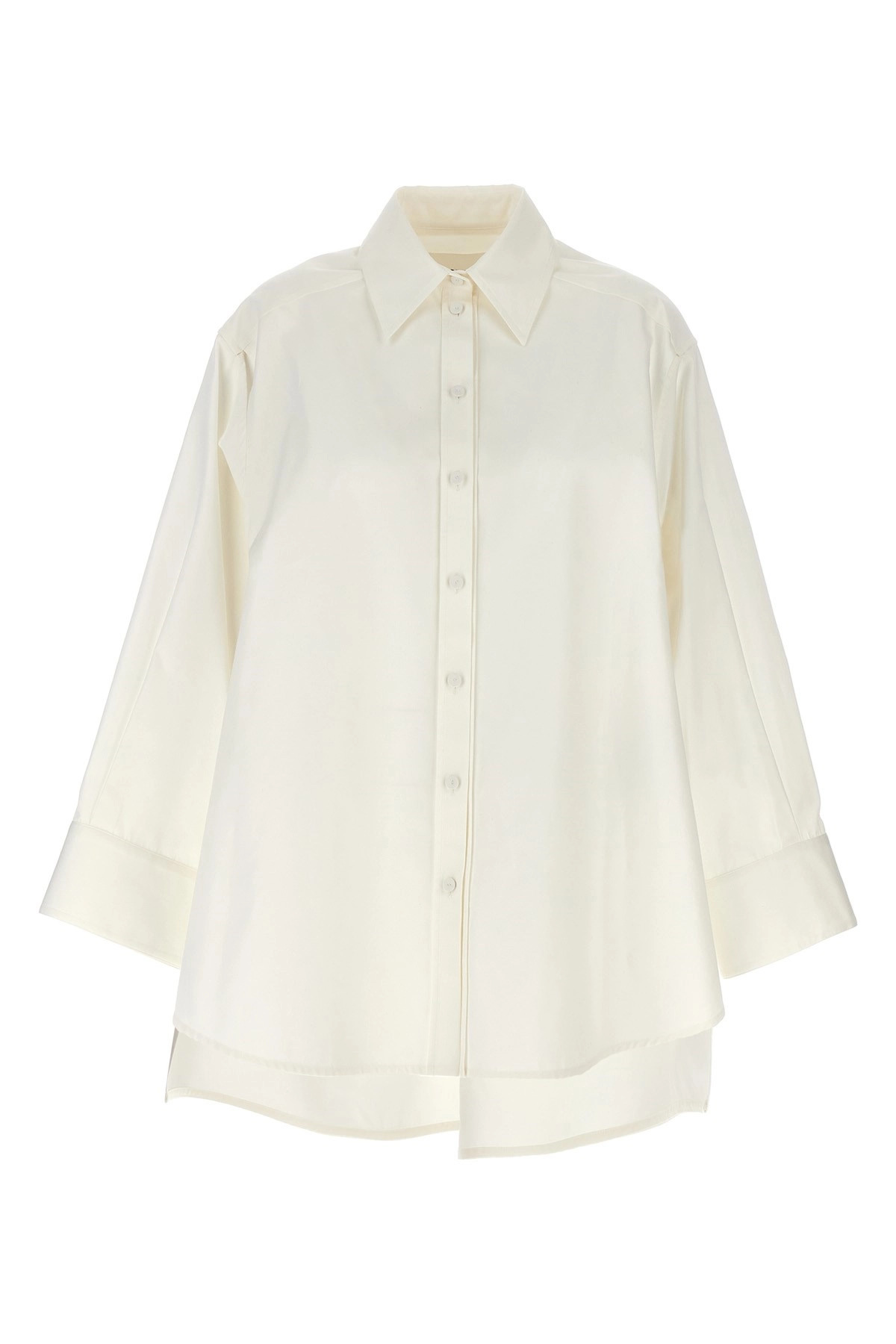 cod. J03DL0153J45266101 Cotton and silk shirt with cut-out details on the armholes, button closure, long cuffed sleeves. Color: White Size & Fit: oversized fit German size Composition: 86% cotton, 14% silk