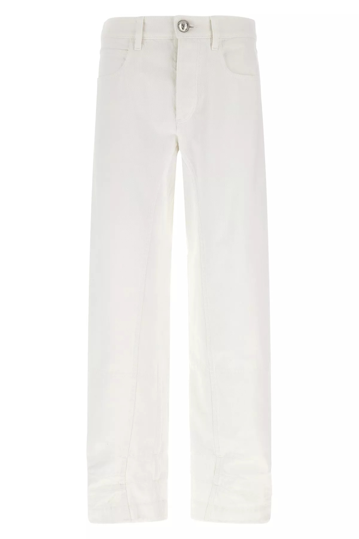 cod. J04KA0115J46463102 High-waisted cotton denim jeans with zip and button closure, five pockets, raw cut hem, and leather logo label at the back. Color: White Size & Fit: true to size fit German size Composition: 100% cotton Made in: Italy