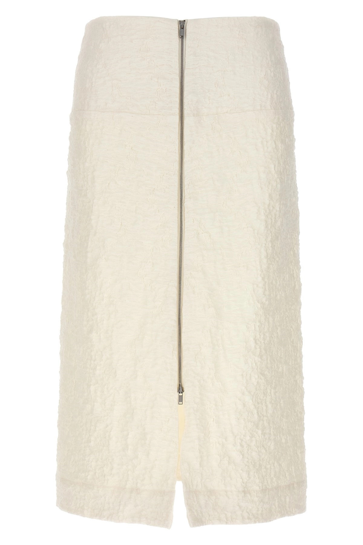 cod. J02MA0174J20138102 Embossed cotton skirt with front zip closure. Color: White Size & Fit: true to size fit German size Composition: 80% cotton 18% polyamide 2% polyurethane