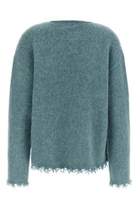cod. J40GP0188J14792441 Wool sweater with boat neckline, long sleeves, and raw-cut fringes on the hemline. Color: Light Blue Size & Fit: True to size fit Composition: 100% wool Made in: Italy