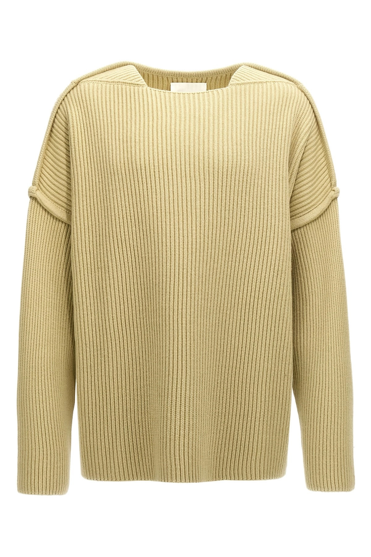cod. J21GP0153J14747331 Ribbed wool sweater with geometric neckline and long sleeves. Color: Green Size & Fit: true to size fit Composition: 100% wool Made in: Italy