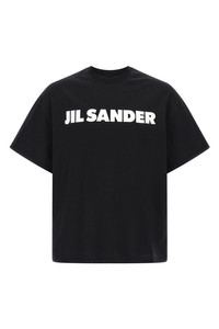 cod. J22GC0221J20349001 Light cotton jersey T-shirt with contrast 'Jil Sander' logo print on the front, crew neck, short sleeves with dropped shoulders. Color: White/Black Size & Fit: oversized and boxy fit Composition: 100% cotton Made in: Italy