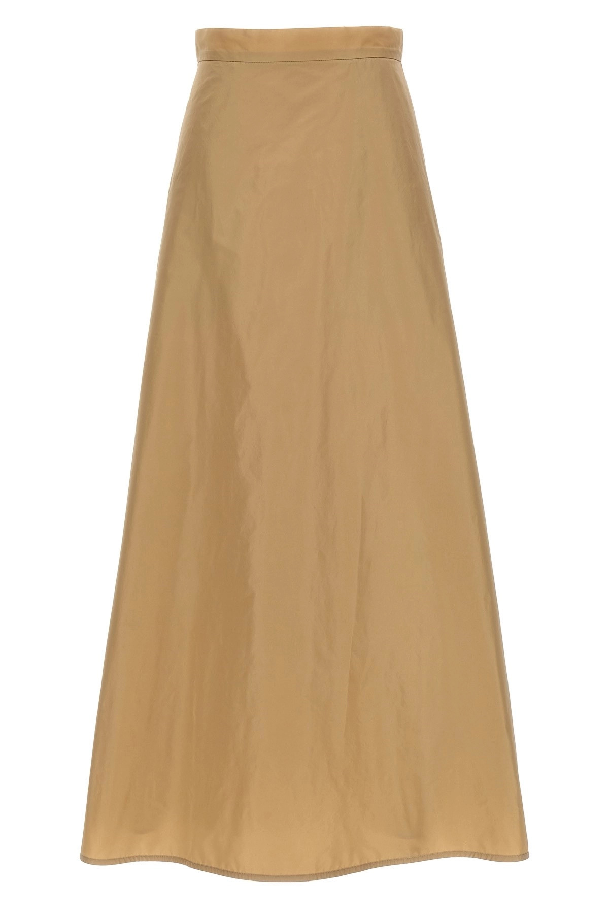 cod. J03MA0167J70005236 Long skirt in technical fabric, flared, high waist with pockets, zip hook and back button closure. Color: Beige Size & Fit: True to size fit German sizing Composition: 100% polyester