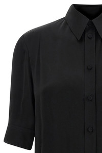 cod. J04DL0001J65022001 Long shirt in fluid viscose, slightly flared silhouette, pointed collar, front button closure, short sleeves with cuffs. Color: Black Size & Fit: true to size fit - GERMAN size Composition: 100% viscose Made in: Italy