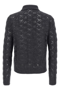 cod. J22DL0331J14780032 Cardigan in virgin wool perforated effect I do not see, shirt collar, front zip closure, long sleeves with cuffs and dropped shoulder. Color: Gray Size & Fit: true to size fit Composition: 100% virgin wool Made in: Italy