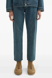 cod. J40KA0243J45291420 'Slim twist' cotton denim jeans with straight leg, slim fit, front zip and button closure, back leather logo tag. Color: Blue Size & Fit: True to size fit Composition: 100% cotton Made in: Japan