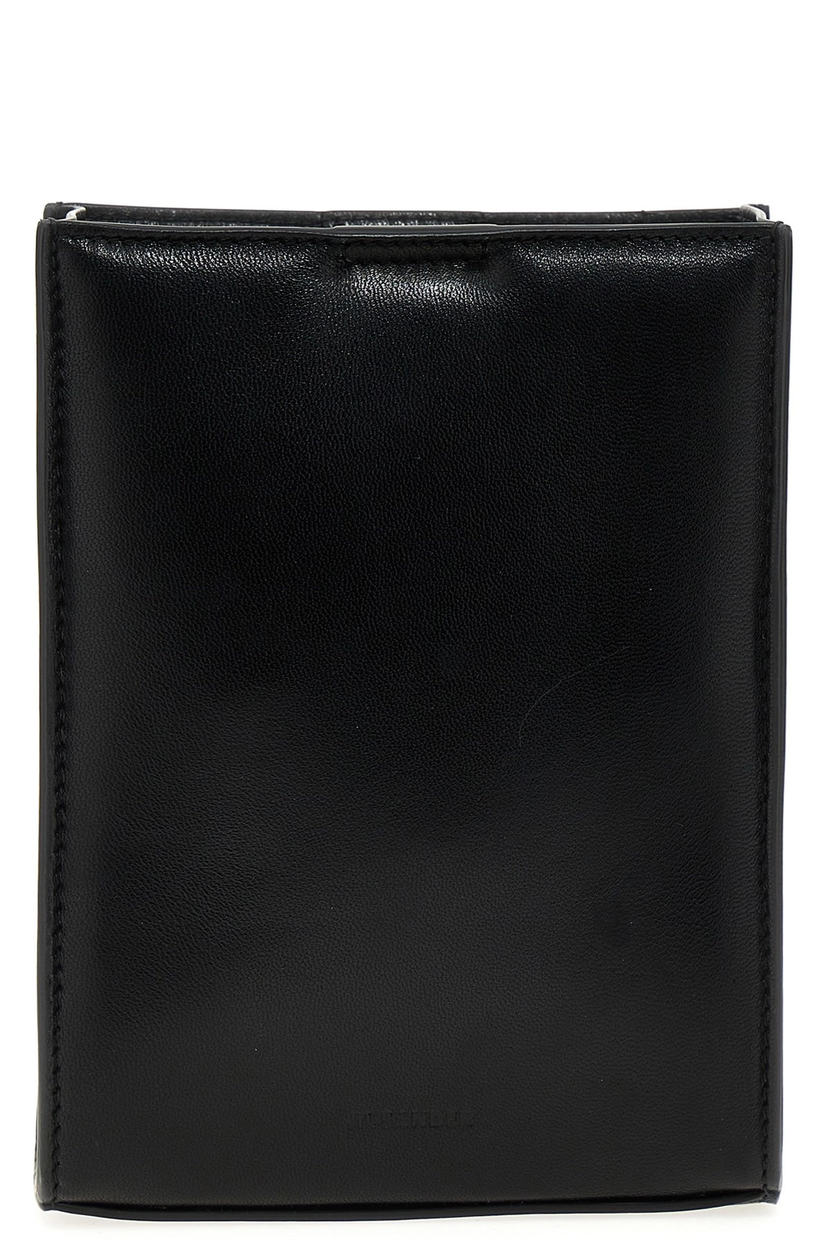 cod. J08WG0018P4845001 'Tangle' supple leather crossbody bag with fixed plaited nappa shoulder strap, front tonal logo, magnetic closure. Color: Black Size & Fit: W 14 x H 18 x D 4.5 cm Composition: 100% calf leather (Bos Taurus)