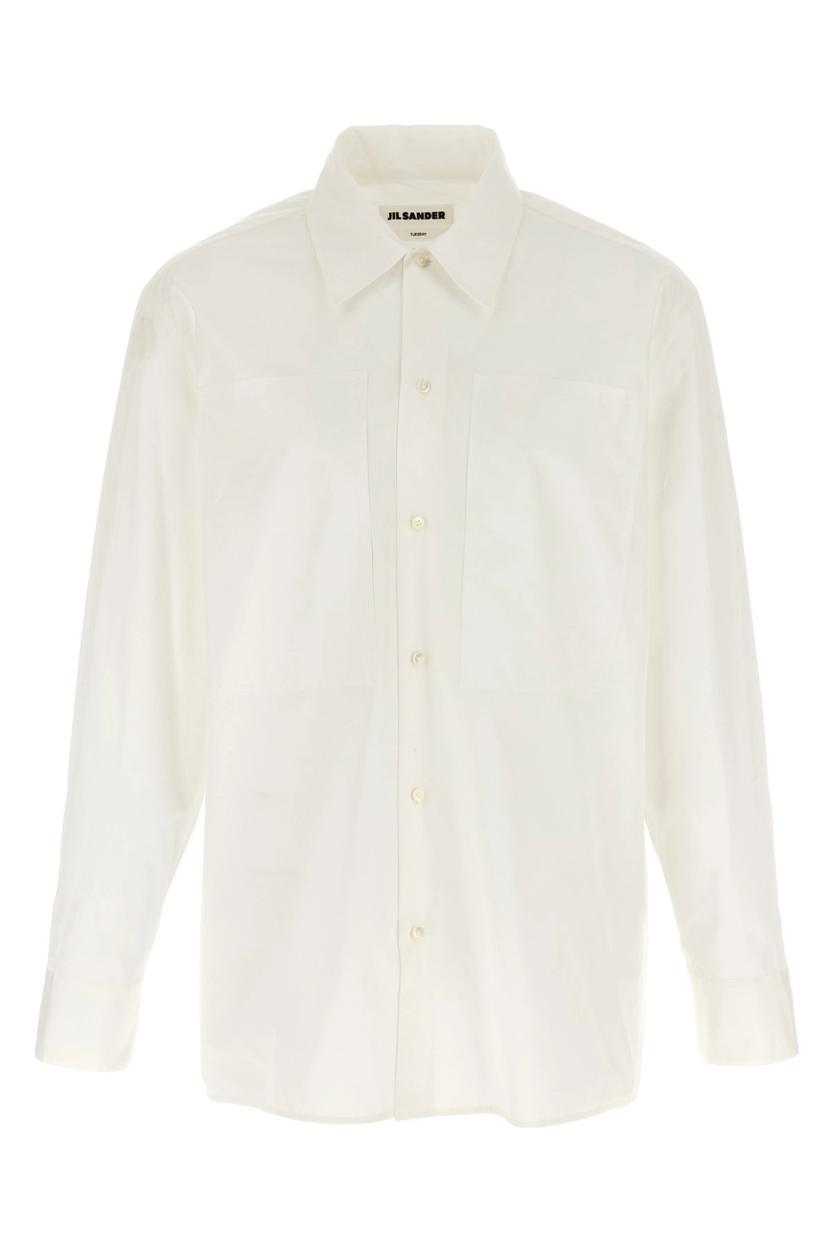 cod. J24DL0111J45001100 'Tuesday A.M.' cotton poplin shirt with front logo embroidery, button closure, front pockets, long cuffed sleeves. Color: White Size & Fit: Comfort fit Collar size Composition: 100% cotton Made in: Italy