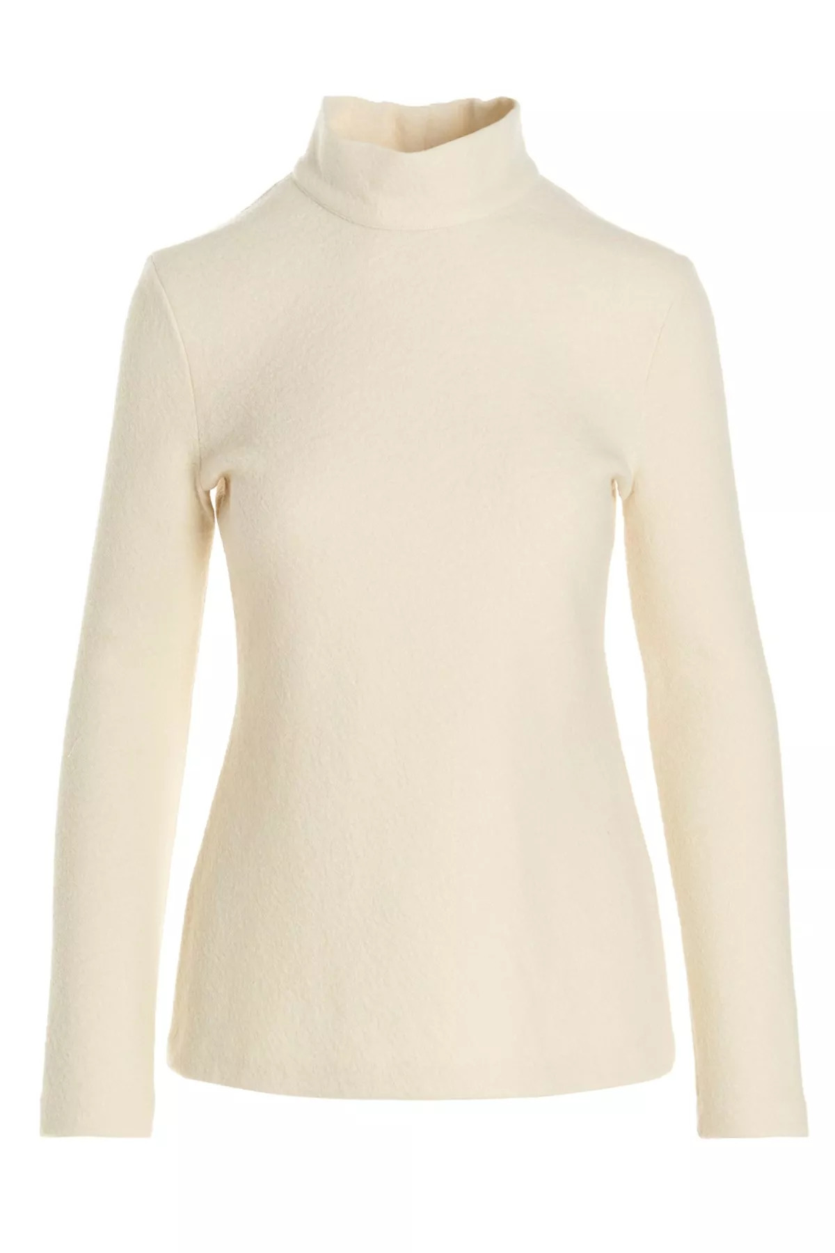 cod. J02NC0012J40016109 Wool blend sweater with high neck and long sleeves. Color: White Size & Fit: True to size fit German size Composition: 64% wool 33% viscose 3% elastane