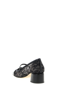 cod. ELISA45DYJBLACKBLACK 'Elisa' pumps in semi-transparent lace effect mesh with toe and patent leather details, strap with pearl detail, square toe, wide heel, leather sole. Color: Black Size & Fit: EU WOMAN - Heels: 4.5 cm Composition: 47% tx 20% lh 20% cy 5% sa 4% me 4% pt Made in: Italy