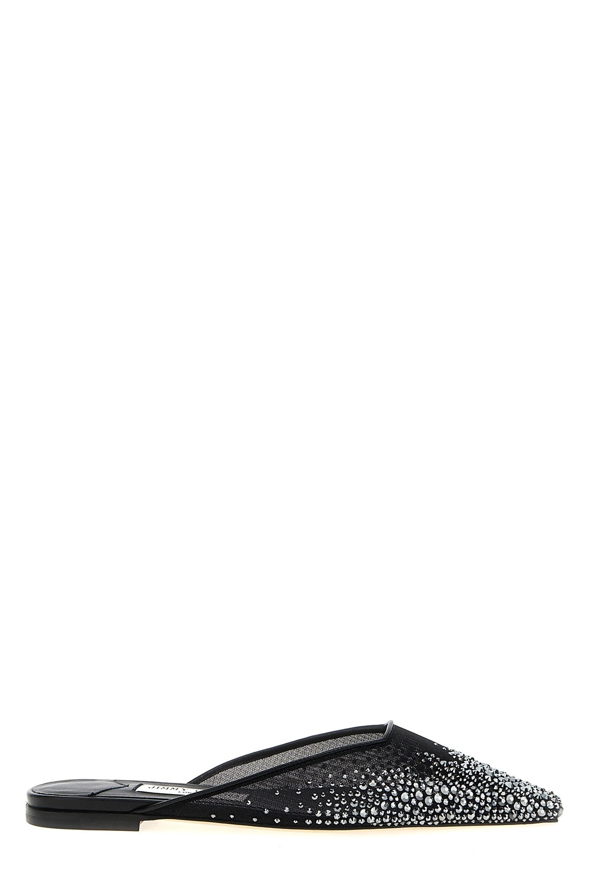 cod. VIVIFLATNYTBLACKSMOKE 'Vivi' mesh sabots with degrade crystal applique and leather details, square toe and leather sole. Color: Black Size & Fit: EU WOMEN Composition: 95% textile 5% lamb leather Made in: Italy