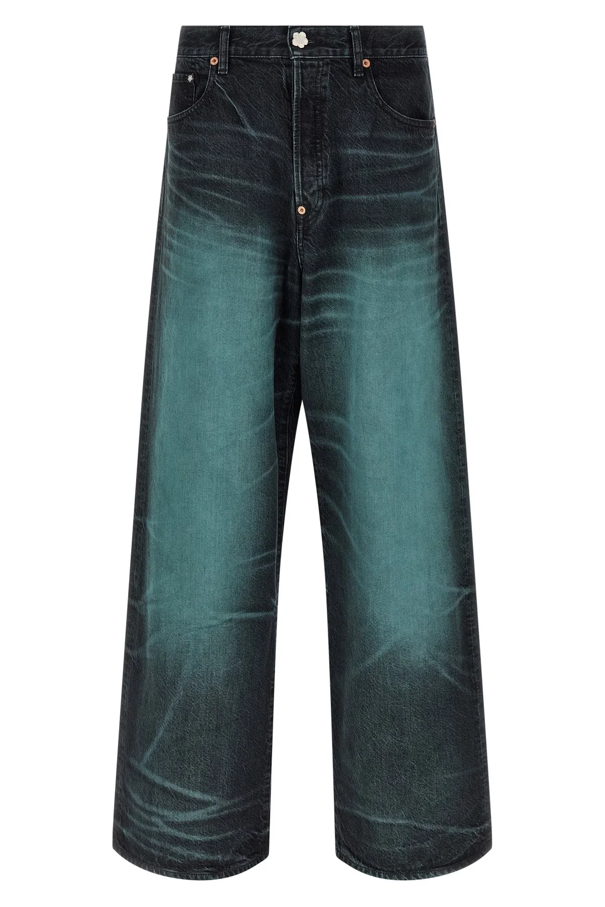 cod. FG55DP4246K762 Overdyed Kuroki Japanese Kuroki denim jeans, wide and straight leg, high waist, metal 'Boke Flower' button closure on the front, five pockets, turn-up on the leg bottom, pony-effect leather logo tag with embossed logo on the back. Color: Blue Size & Fit: true to size fit Composition: 100% cotton Made in: Tunisia