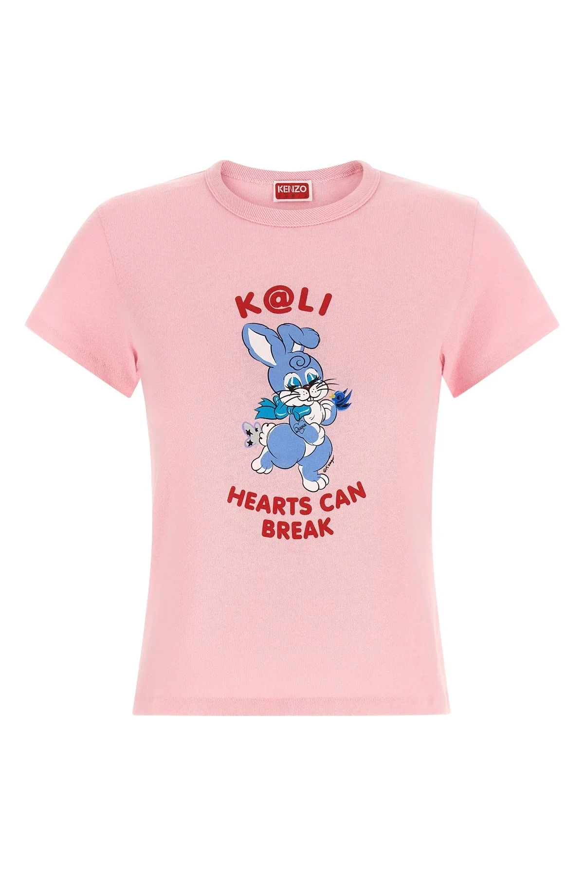 cod. FG52TS2224SK32 'KENZO Cartoon' cotton single jersey T-shirt with front and back print, ribbed piping crewneck, and short sleeves. Color: Pink Size & Fit: true to size fit Composition: 100% cotton Made in: Portugal