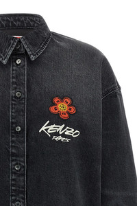 cod. FF62DC2506C8BS Japanese stone bleach wash denim shirt, workwear model, embroidery and 'Kenzo x Futura 2000' patch on the front and back, front button closure, long sleeves with cuffs and dropped shoulder. Color: Black Size & Fit: oversized fit Composition: 99% cotton, 1% elastane Made in: Tunisia
