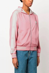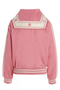 cod. FD52SW0284IE30 Tech fabric sweatshirt with wide bib on the back, front logo embroidery, maxi back embroidery, zip closure, pockets, long cuffed sleeves, contrast bands on the sleeves with embroideries. Color: Pink Main: 55% polyester 43% viscose 2% elastane Made in: Portugal Size & Fit: True to size fit