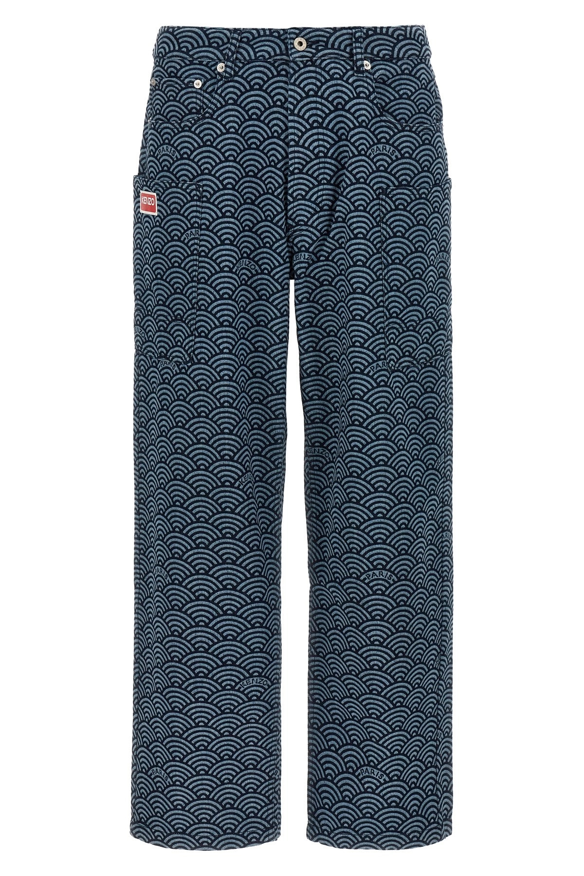 cod. FE55DP4086K1DM 'Seigaiha' denim jeans with all-over pattern, maxi pockets and wide leg. Color: Blue Size & Fit: Monkey fit Composition: 100% cotton Made in: Portugal