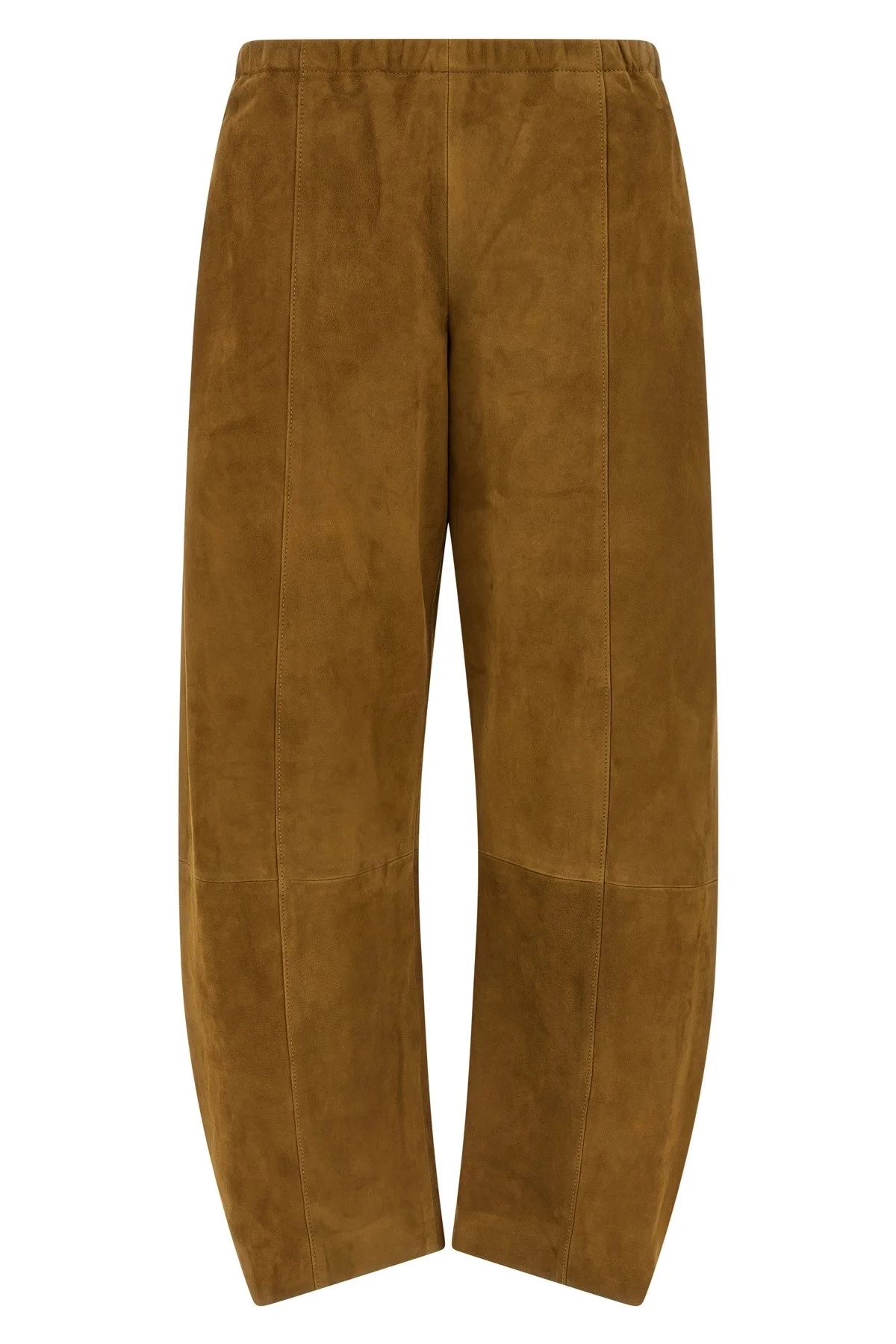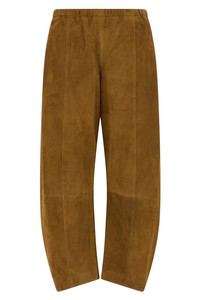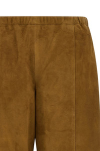 cod. 3176709907 'Clover' suede pants, medium waist model with wide leg on the hem, elastic waistband. Color: Brown Size & Fit: True to size fit Composition: 100% lamb leather (Ovis aries) Made in: Italy