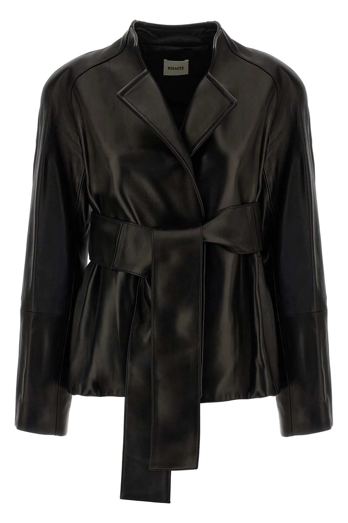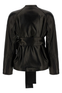 cod. 6181937200 Edith' plonge leather jacket with cupro twill lining, dressing gown style with removable sash belt, long sleeves, pockets. Color: Black Size & Fit: true to size fit Composition: 100% lamb leather (Ovis aries) Made in: United States
