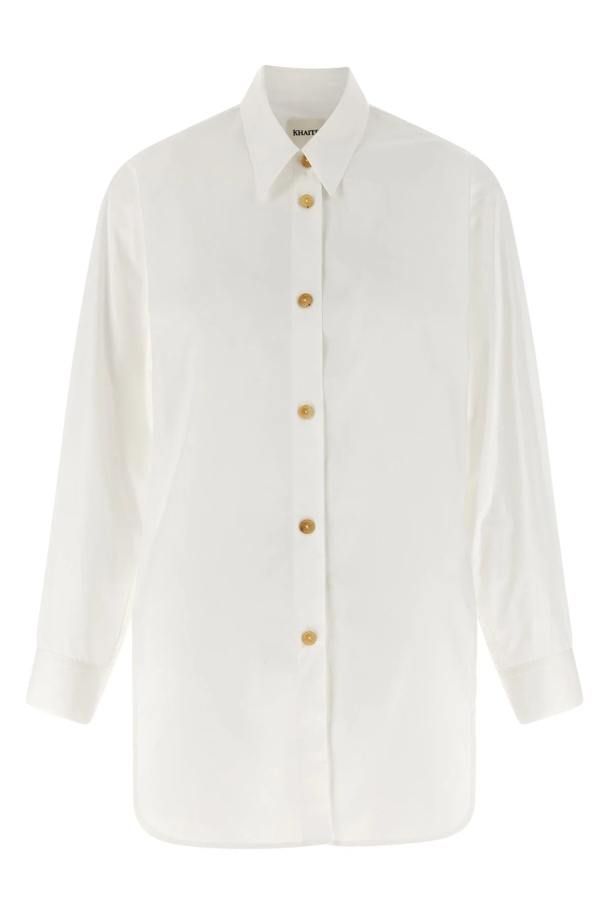 cod. 2430195100 'Goya' cotton poplin shirt, collar, wide side slits and rounded hem, front button closure, long sleeves with cuffs. Color: White Size & Fit: True to size fit Composition: 100% cotton Made in: Italy