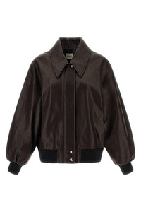 cod. 6166729950 'Shelman' leather bomber jacket with shirt collar, elastic knit hem and cuffs, front closure with hidden zip, twill lining, long sleeves. Color: Brown Size & Fit: True to size fit Composition: 100% lamb leather (Ovis aries) Made in: Italy