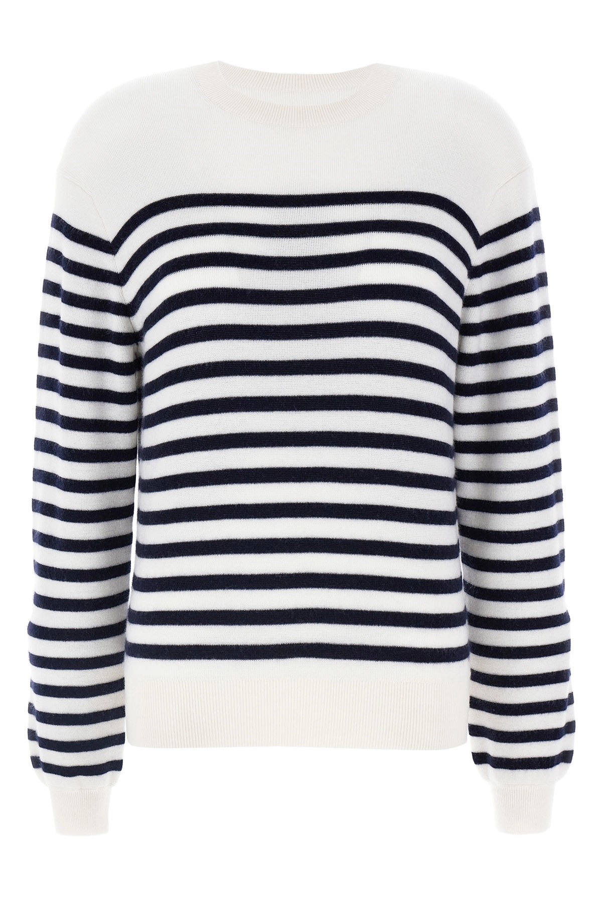 cod. 9305648468 'Viola' striped cashmere sweater with crew neck, long cuffed sleeves and dropped shoulders. Color: White/Black Size & Fit: true to size fit Composition: 80% cashmere, 20% elastane Made in: Mongolia