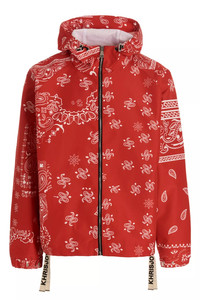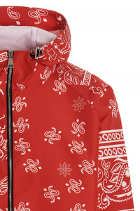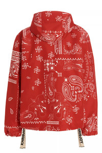 cod. DSM051NNYNYBNDRD19 'Windbreaker Bandana Hood' nylon jacket with all-over print, zip closure, pockets, long sleeves with adjustable cuffs. Color: Red Main: 100% polyester Made in: Italy Size & Fit: True to size fit