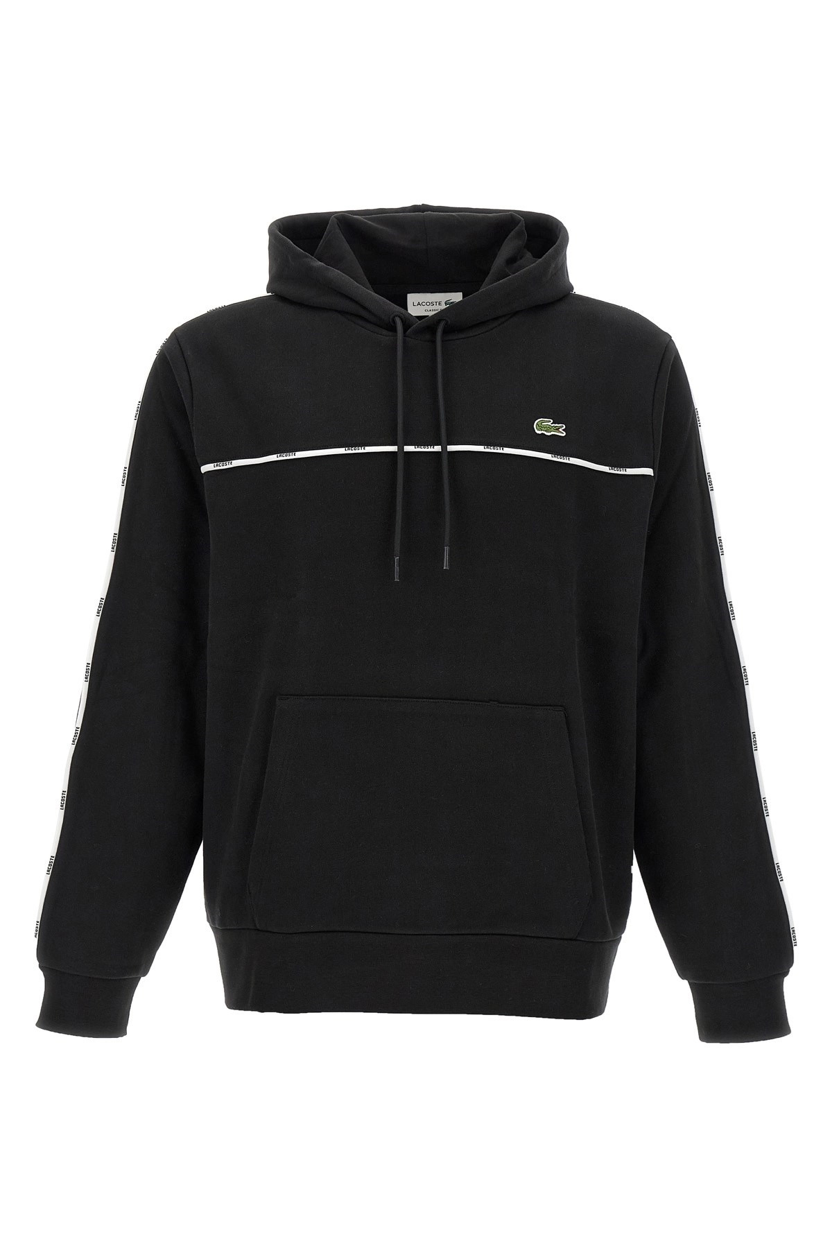 cod. SH9808031 Brushed cotton hoodie with Lacoste Trim detail and front logo patch, kangaroo pocket, long cuffed sleeves and dropped shoulders. Color: Black Size & Fit: Comfort fit Composition: 100% cotton Made in: Egypt