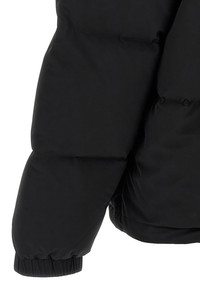 cod. BH5154031 Padded and quilted down jacket in windproof and rainproof fabric, high collar and removable hood, front logo patch, zip closure, adjustable drawstring at the hem, long sleeves with elastic cuffs. Color: Black Size & Fit: True to size fit Composition: 84% polyamide, 16% elastane Made in: Vietnam