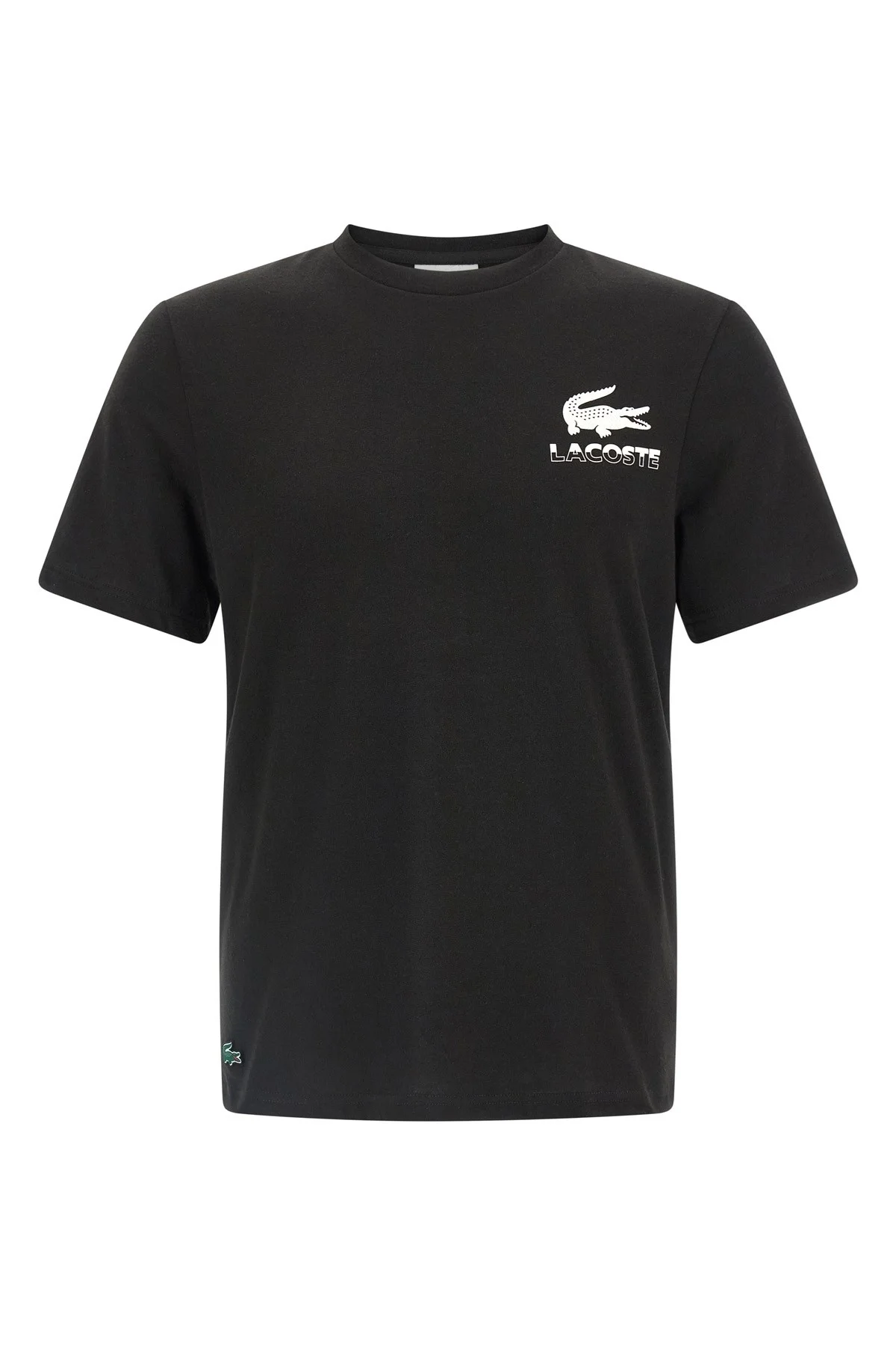 cod. TH5517031 Cotton blend T-shirt, 3D printing front and back, silicone logo patch on the front, crew neck, short sleeves. Color: Black Size & Fit: true to size fit Composition: 65% cotton, 35% polyester Made in: Tunisia