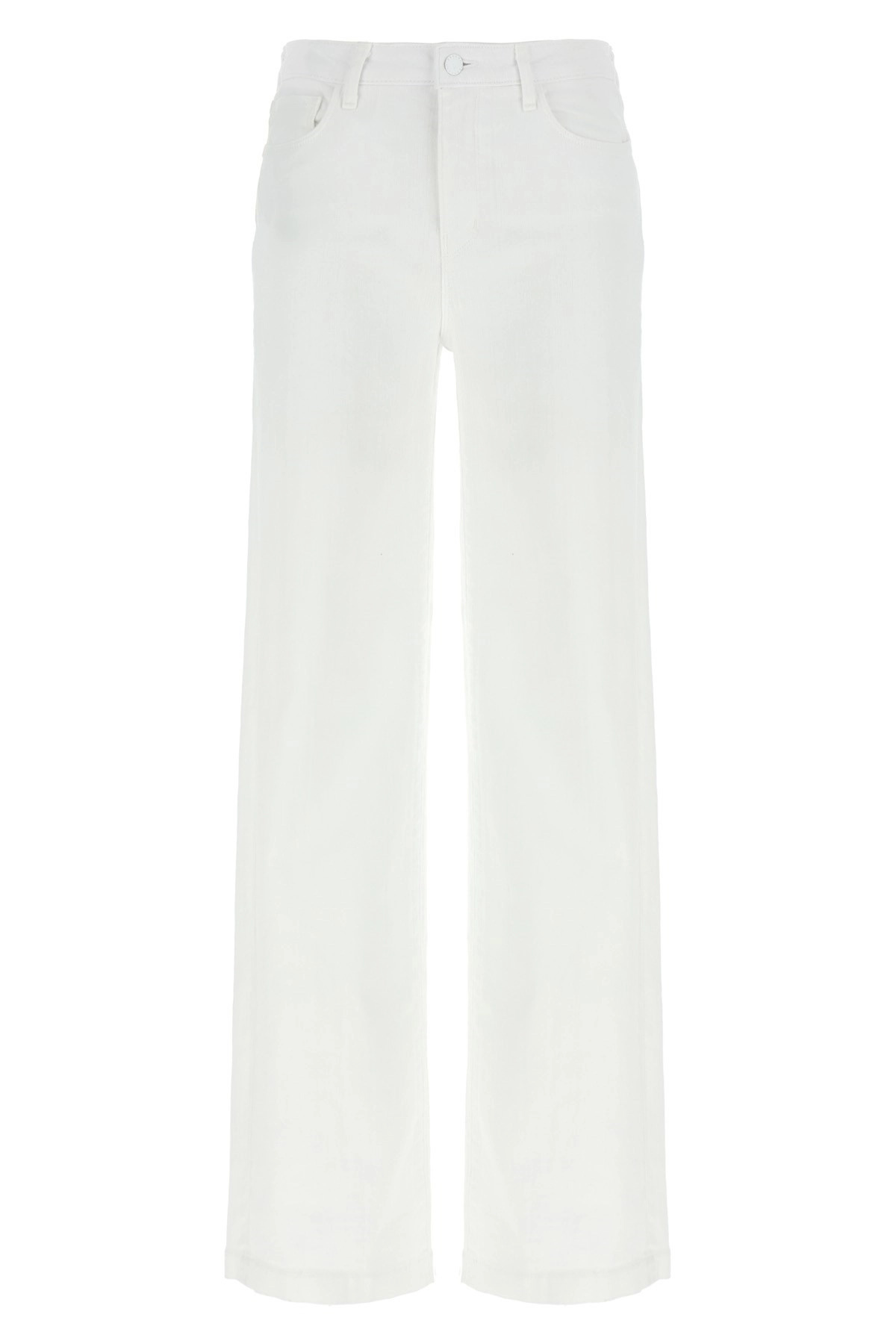 cod. 2790KBOBLAN 'Clayton' cotton denim jeans, high waist, straight wide leg, zip and front button closure, five pockets. Color: White Size & Fit: true to size fit Composition: 98% cotton 2% spandex Made in: United States