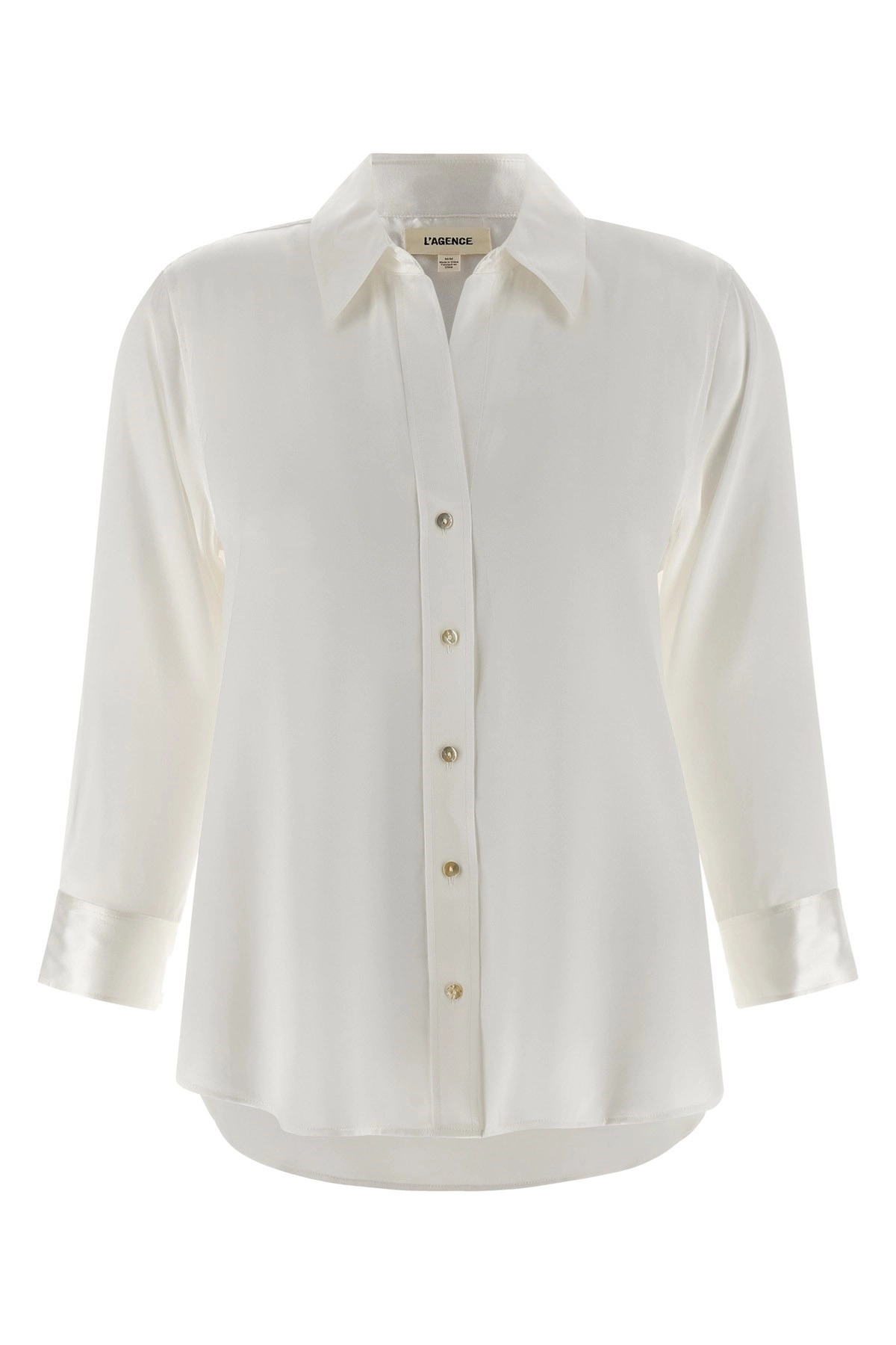 cod. 40126CLWIVOR 'Dani' charmeuse silk shirt with front button closure, 3/4 cuffed sleeves. Color: White Size & Fit: Slim fit Composition: 100% silk Made in: China