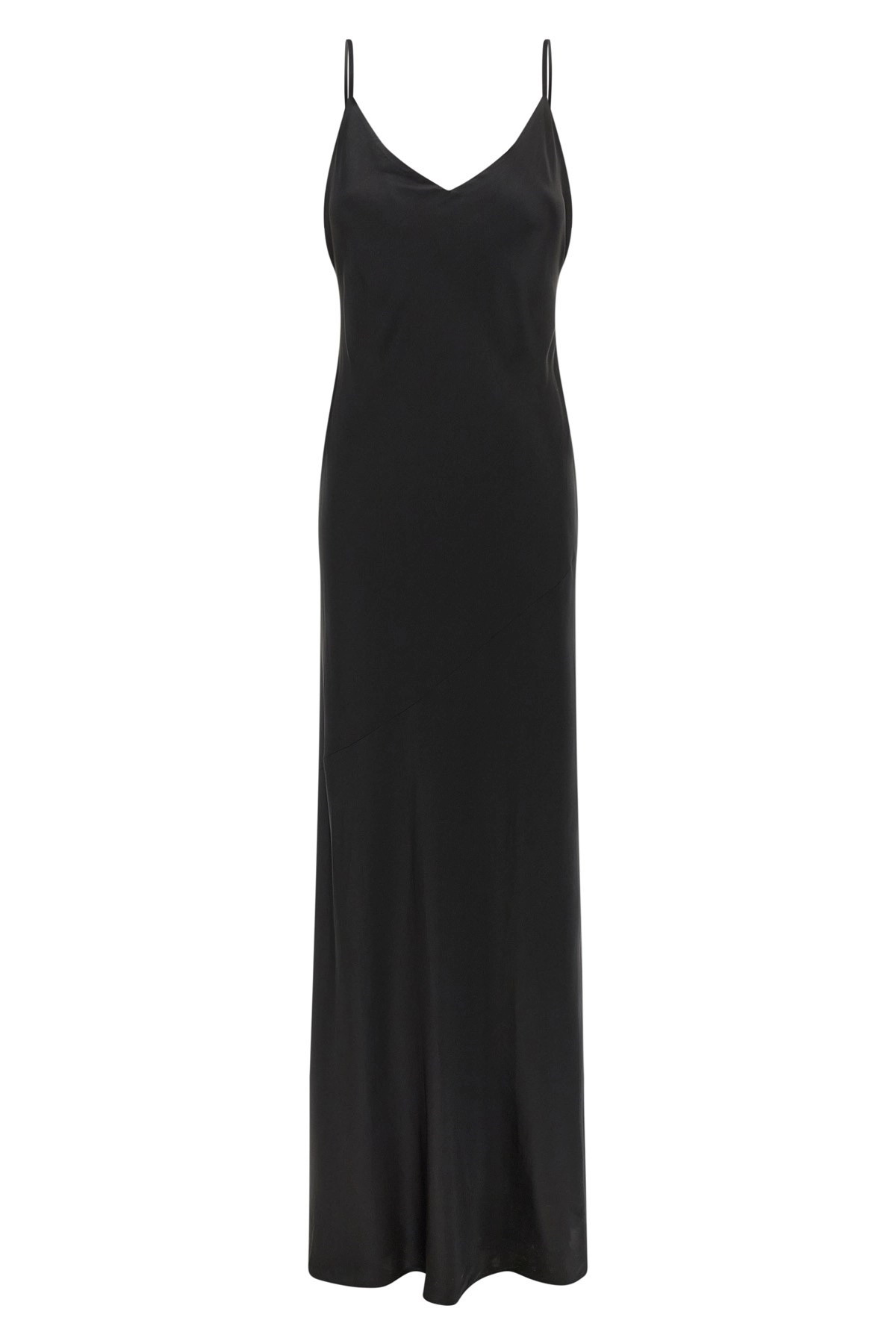 cod. 61078CLWBLAC Long 'Serita' dress in silk charmeuse, petticoat with flared silhouette, adjustable straps, sleeveless, wide round neckline at the front and square at the back. Color: Black Size & Fit: true to size fit Composition: 100% silk Made in: China
