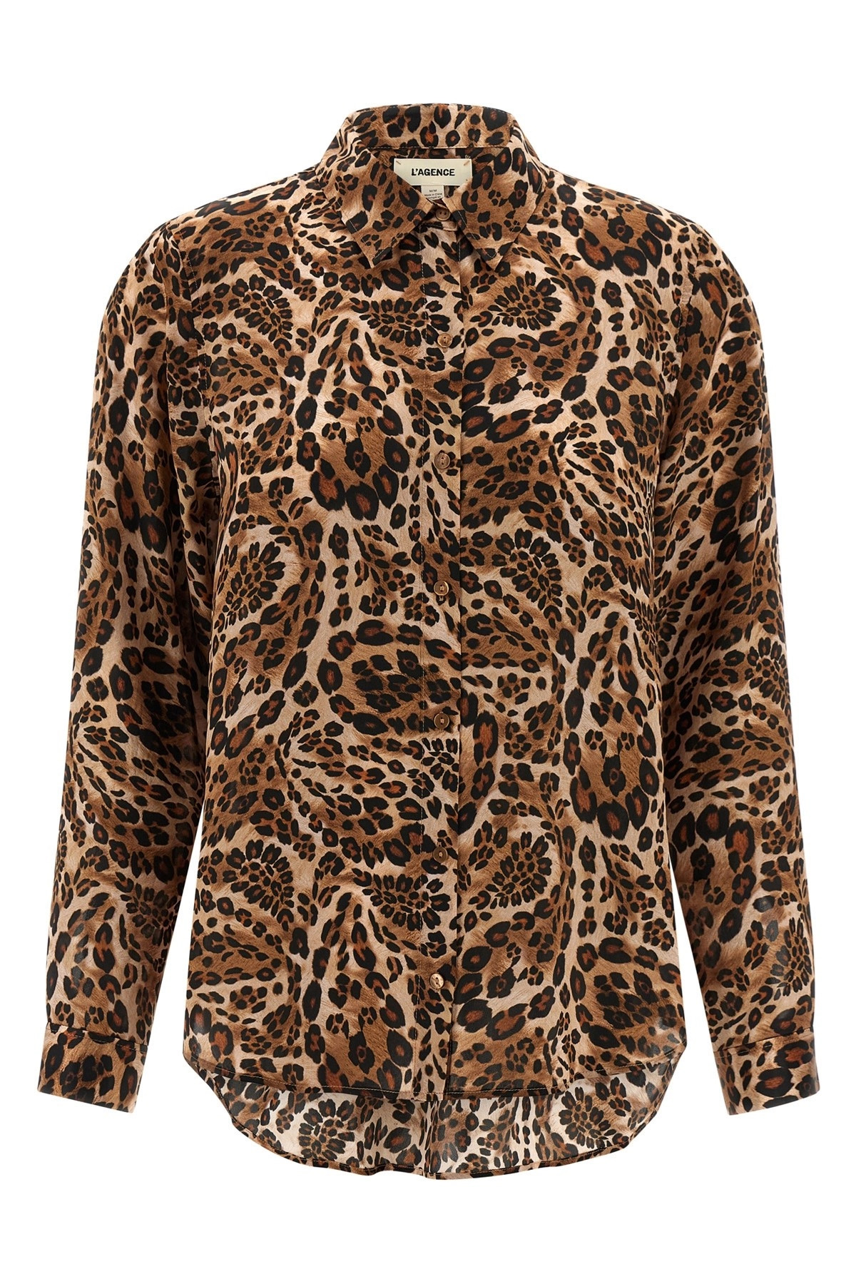 cod. 40223LOWCSPL 'Tyler' silk shirt with animal print, front button closure, long cuffed sleeves. Color: Brown Size & Fit: Slim fit Composition: 100% silk Made in: China