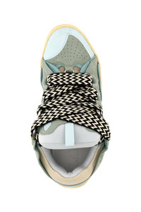 cod. FUSKDK12DRA2P2521 'Curb' sneakers in calf nappa, suede and mesh, matelasse tongue with Lanvin label and embossed logo, double waxed and herringbone laces, calf leather lining with Lanvin logo, rubber sole. Color: Light Blue Size & Fit: EU MEN Composition: 76% calfskin leather 24% polyester Made in: Portugal