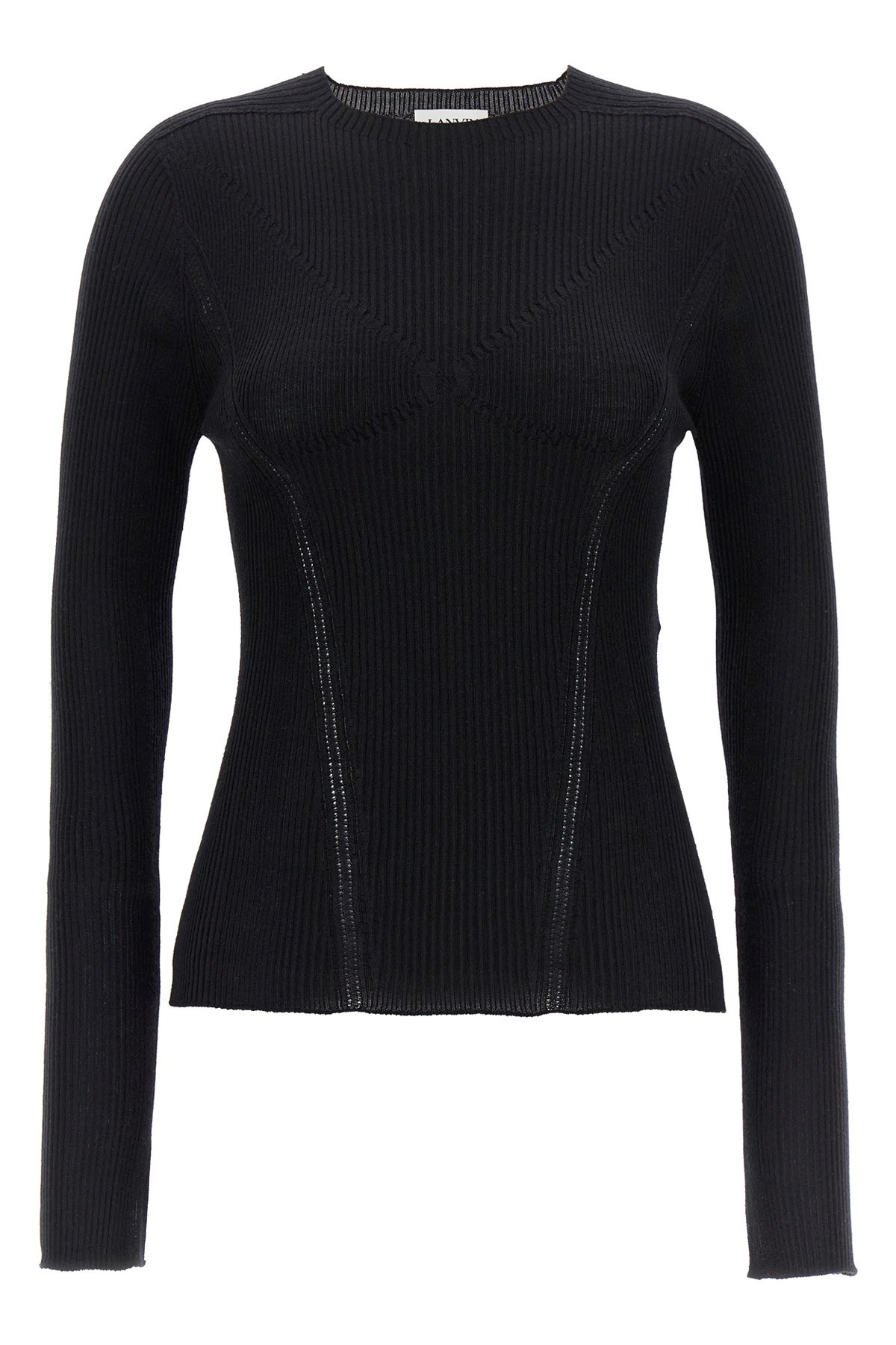 cod. RWPO0020K004A2310 Ribbed crewneck sweater in cashmere blend with long sleeve. Color: Black Size & Fit: slim fit Composition: 35% ws, 35% se, 30% wo