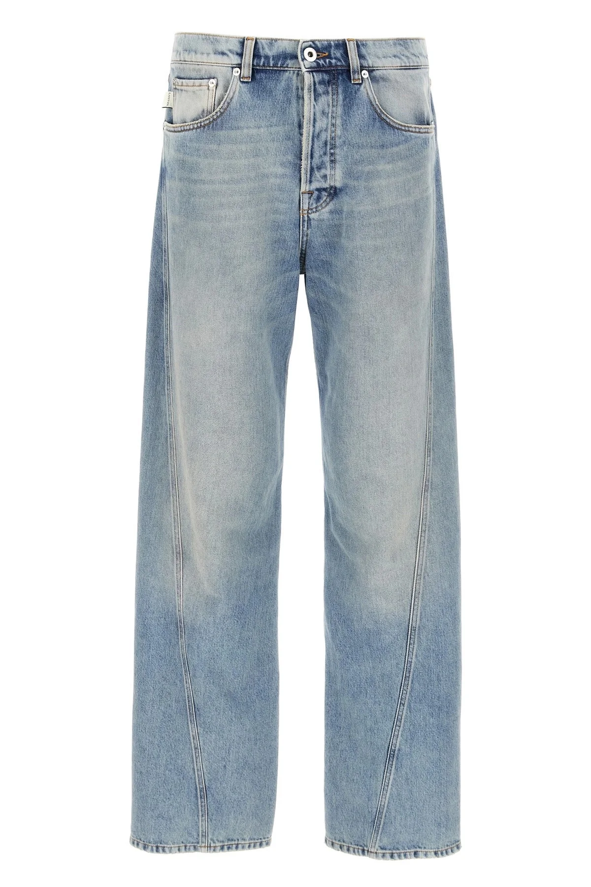 cod. RMTR0051D087P2522 Used-effect cotton denim 'Twisted Hem' jeans, straight leg, zipper and button closure, leather back salpa.ck logo tag. Color: Light Blue Size & Fit: True tso size fit Composition: 100% cotton Made in: Italy