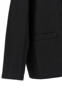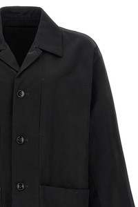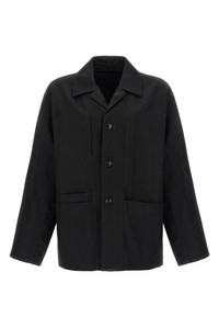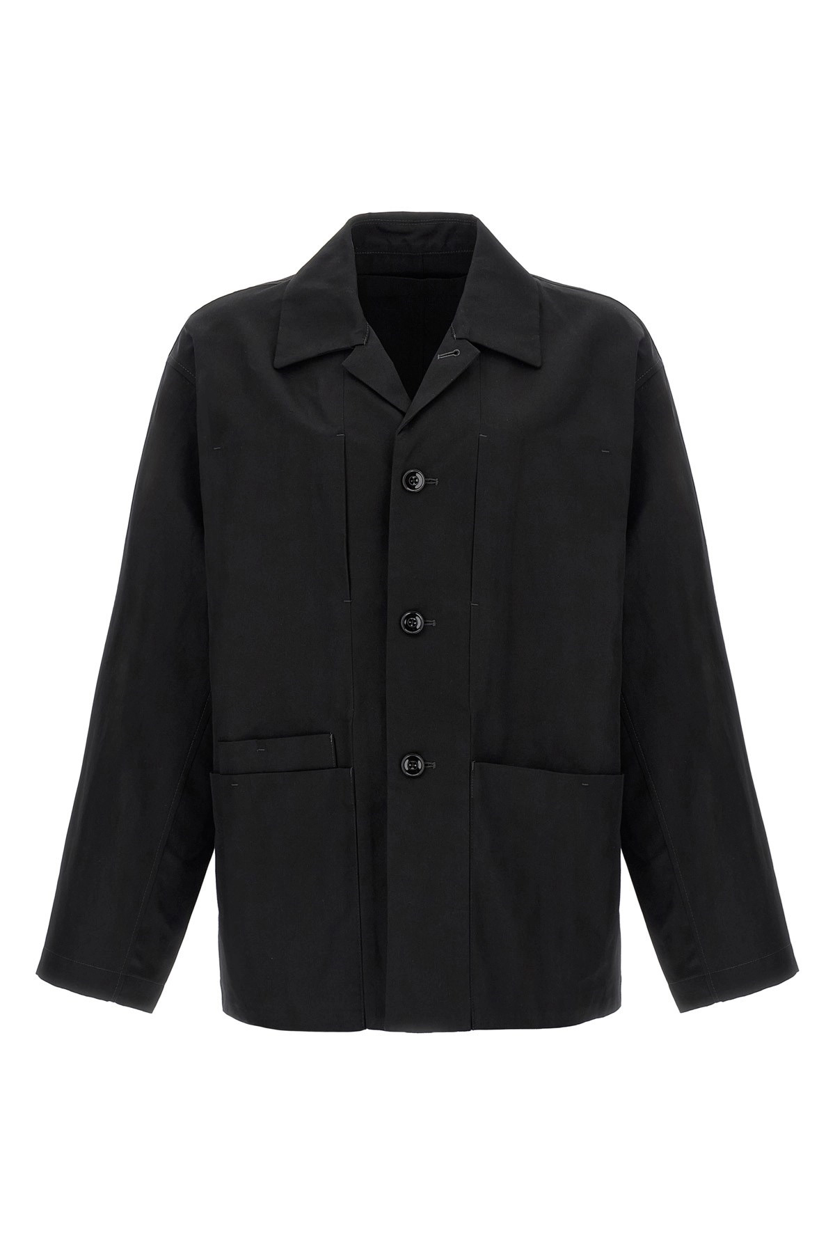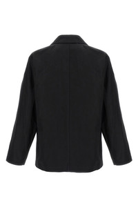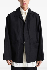 cod. OW1148LF1350BK999 'Boxy SB Workwear' jacket in cotton and linen gabardine, unlined, front button closure, collar, pockets, long sleeves with dropped shoulders. Color: Black Size & Fit: Comfort fit LEMAIRE size Composition: 60% cotton, 40% linen Made in: Romania