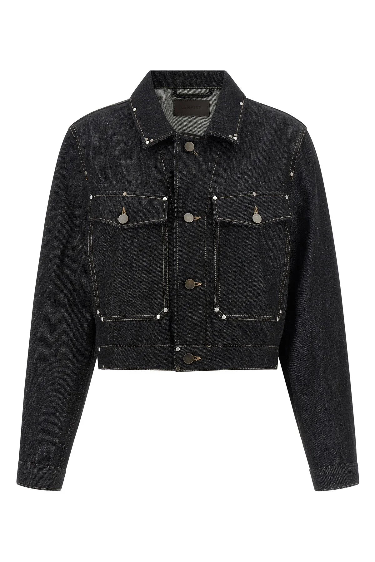 CROPPED BLOUSON WITH STUDS IN DENIM