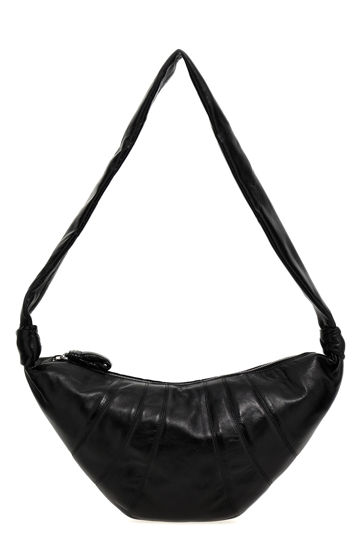 cod. BG0001LL095BK999 'Medium Croissant' shoulder bag in soft nappa leather, zip closure, handle with knot detail. Color: Black Size & Fit: W 47 x H 22 x D 7 cm Composition: 100% lamb leather Made in: Spain