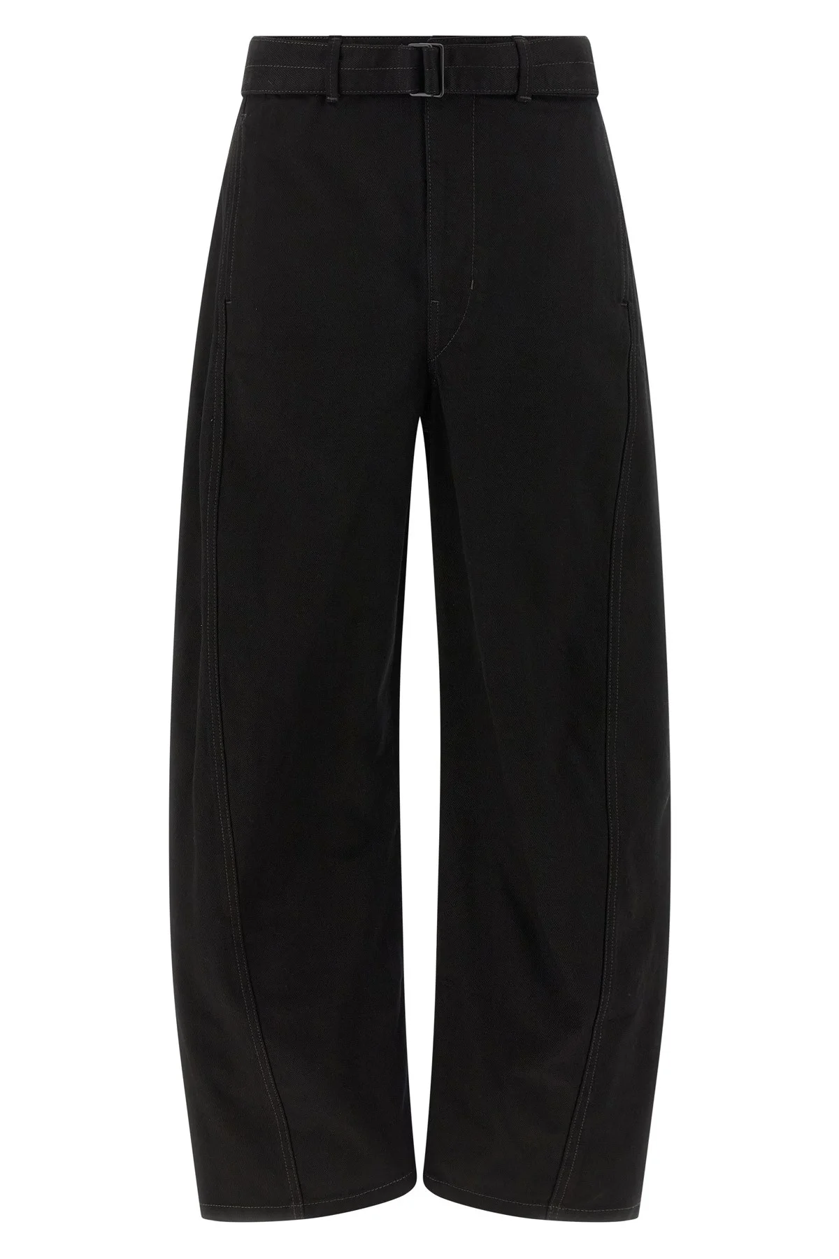 cod. PA326LD1055BK999 'Twisted Belted' heavy cotton denim jeans, curved leg, mid waist, zip, hook and front button closure, pockets, removable belt. Color: Black Size & Fit: true to size fit Composition: 100% cotton Made in: Morocco