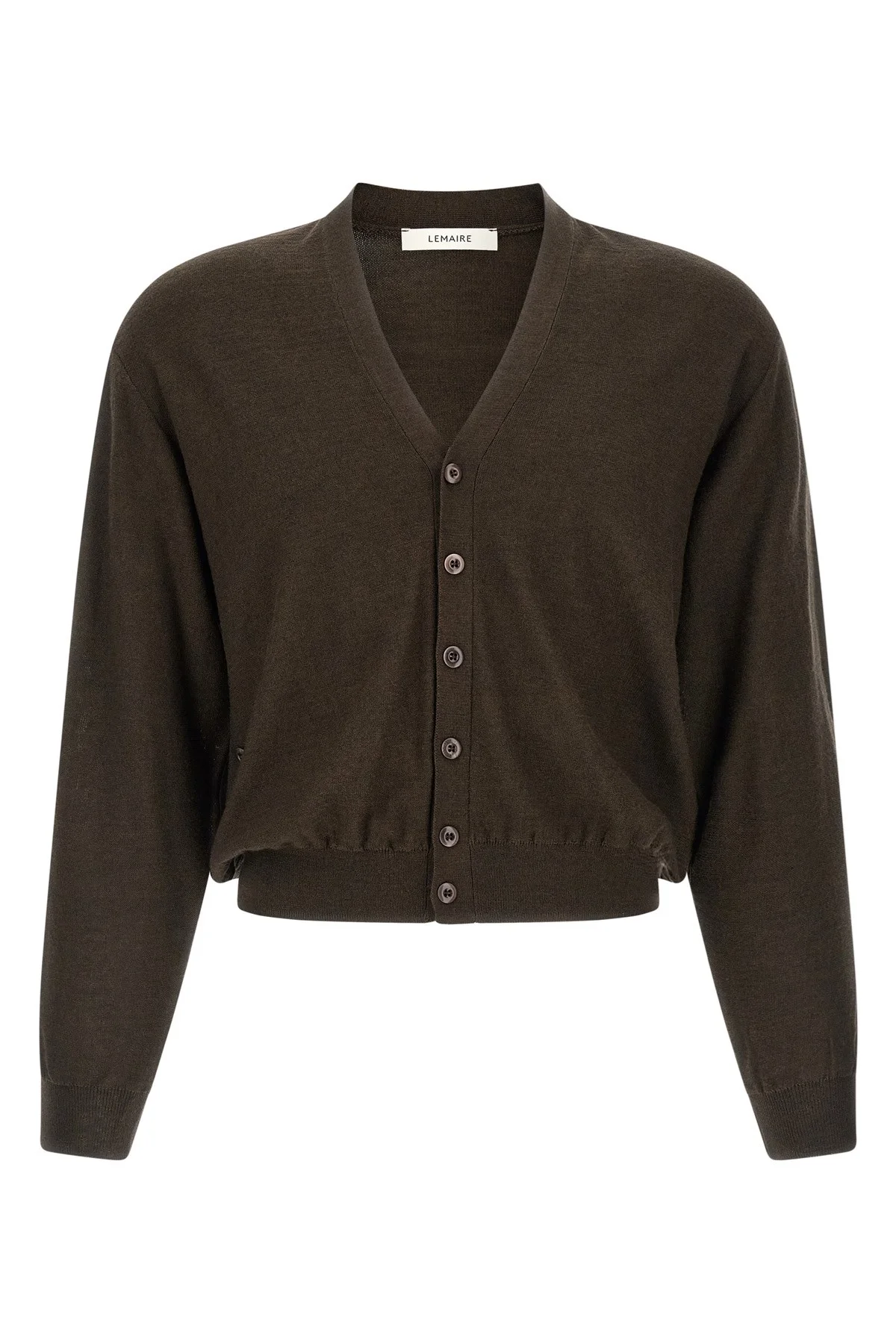 cod. PO0023LK087BR397 'Twisted' wool blend knit cardigan with V-neck, front asymmetric button closure, long cuffed sleeves, and headband. Color: Brown Size & Fit: true to size fit Composition: 50% acrylic 50% wool Made in: Portugal PROMO CODE NOT APPLICABLE