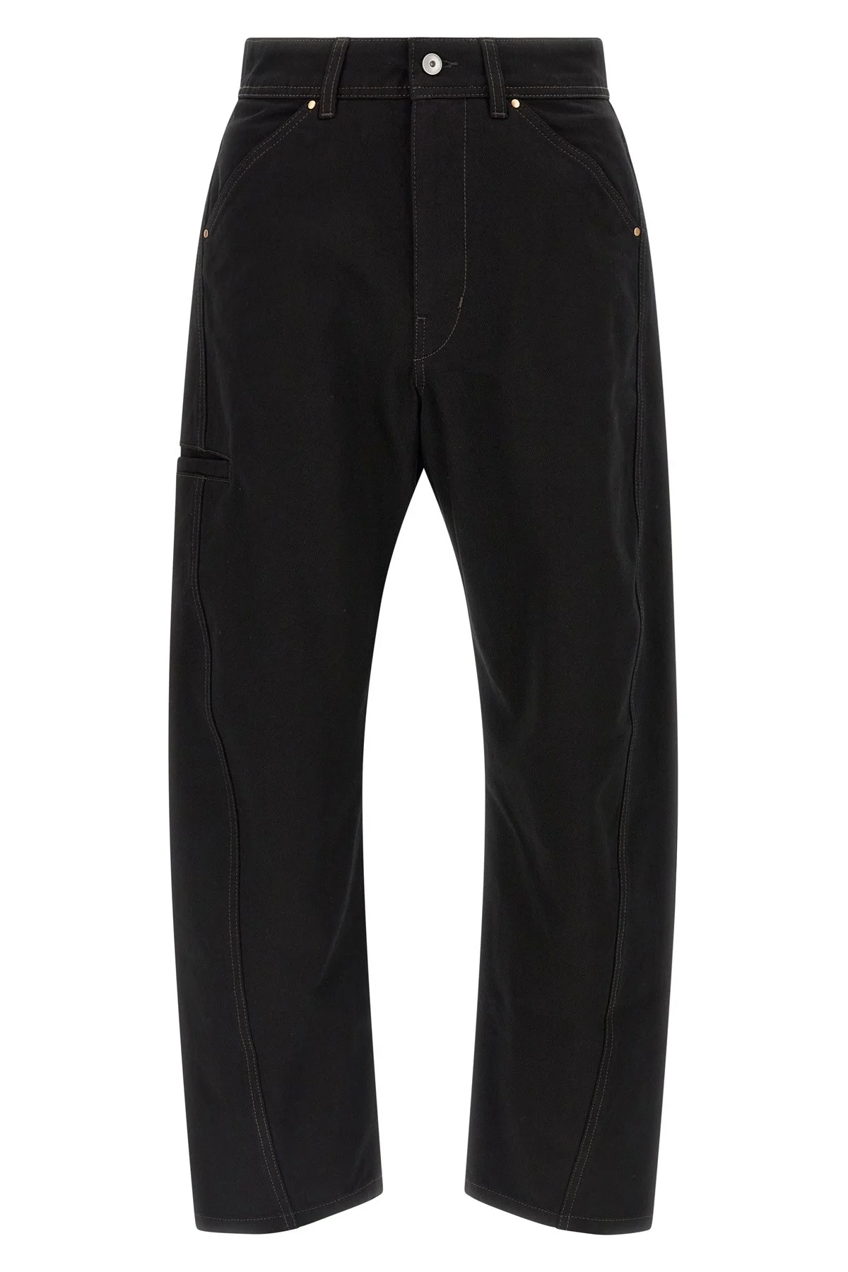 cod. PA1102LD1055BK999 'Twisted Workwear' cotton denim jeans often dyed garment, contrast stitching, twisted silhouette, front zip and button closure, pockets, back leather logo tag. Color: Black Size & Fit: true to size fit Composition: 100% cotton Made in: Morocco PROMO CODE NOT APPLICABLE