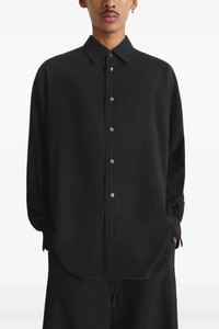 cod. SH1206LF1286BK997 Shirt in light viscose and wool blend with a smooth and compact hand, contrast stitching, front button closure, long sleeves with cuffs and dropped shoulders. Color: Black Size & Fit: oversized fit Composition: 85% viscose, 15% virgin wool Made in: Tunisia