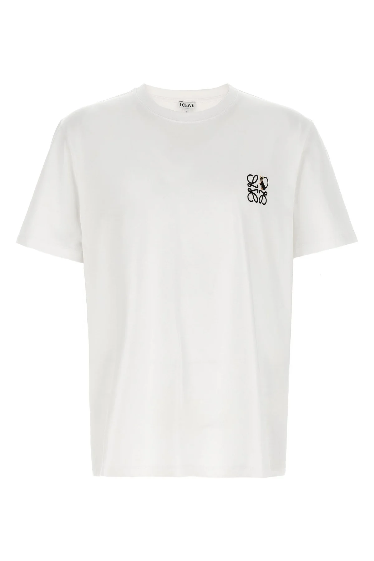 cod. H526Y22XD22100 Medium weight cotton t-shirt, front Anagram cat embroidery, crew neck, short sleeves with dropped shoulders. Color: White Size & Fit: Relaxed fit Composition: 94% cotton 5% polyester 1% elastane Made in: Portugal PROMO CODE NOT APPLICABLE