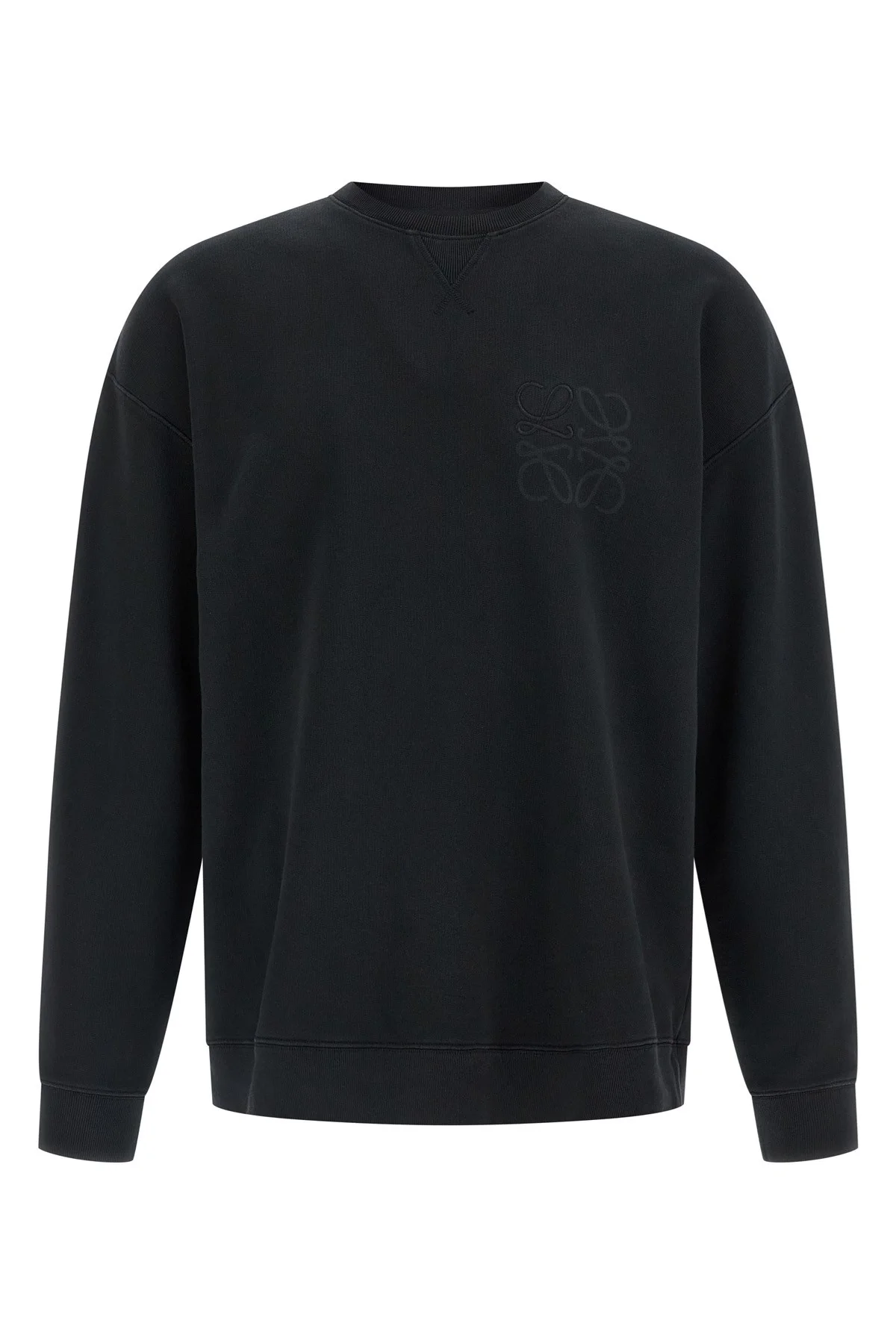 cod. H526Y24X781100 Medium weight loopback cotton sweatshirt, Anagram embroidered and laser printed on the front, crew neck, long sleeves with cuffs and dropped shoulder, and band on the hem. Color: Black Size & Fit: Relaxed fit Composition: 95% cotton, 5% polyester Made in: Portugal PROMO CODE NOT APPLICABLE