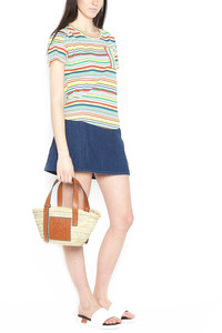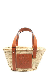 cod. 32702S932435 Loewe 'Basket Bag' small handbag in palm leaves featuring leather details, an iconic contrasting logo patch and leather handles. Handcrafted product, any imperfections are to be considered characteristics of uniqueness. Color: Beige Size & Fit: W 33 x H 17 x D 13 cm Composition: 90% straw 10% leather Made in: Spain PROMO CODE NOT APPLICABLE