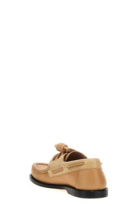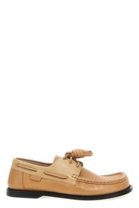 cod. LLSCS08X084838 'Campo' calf leather boat shoe featuring the iconic rounded toe LOEWE and hand-stitched construction, padded leather insole, lace-up closure, injected rubber island sole. Color: Beige Size & Fit: EU WOMEN Composition: 100% calfskin leather (Bos Taurus) Made in: Italy