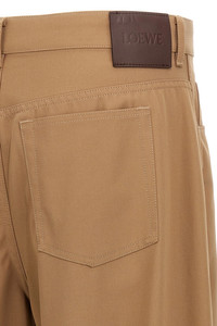 cod. H526Y04WHB2140 'Carpenter' light cotton twill pants with leather details, mid-rise model with slightly curved leg, front button closure, five pockets, back logo tag. Color: Brown Size & Fit: Relaxed fit Composition: 95% cotton 5% calf leather Made in: Italy