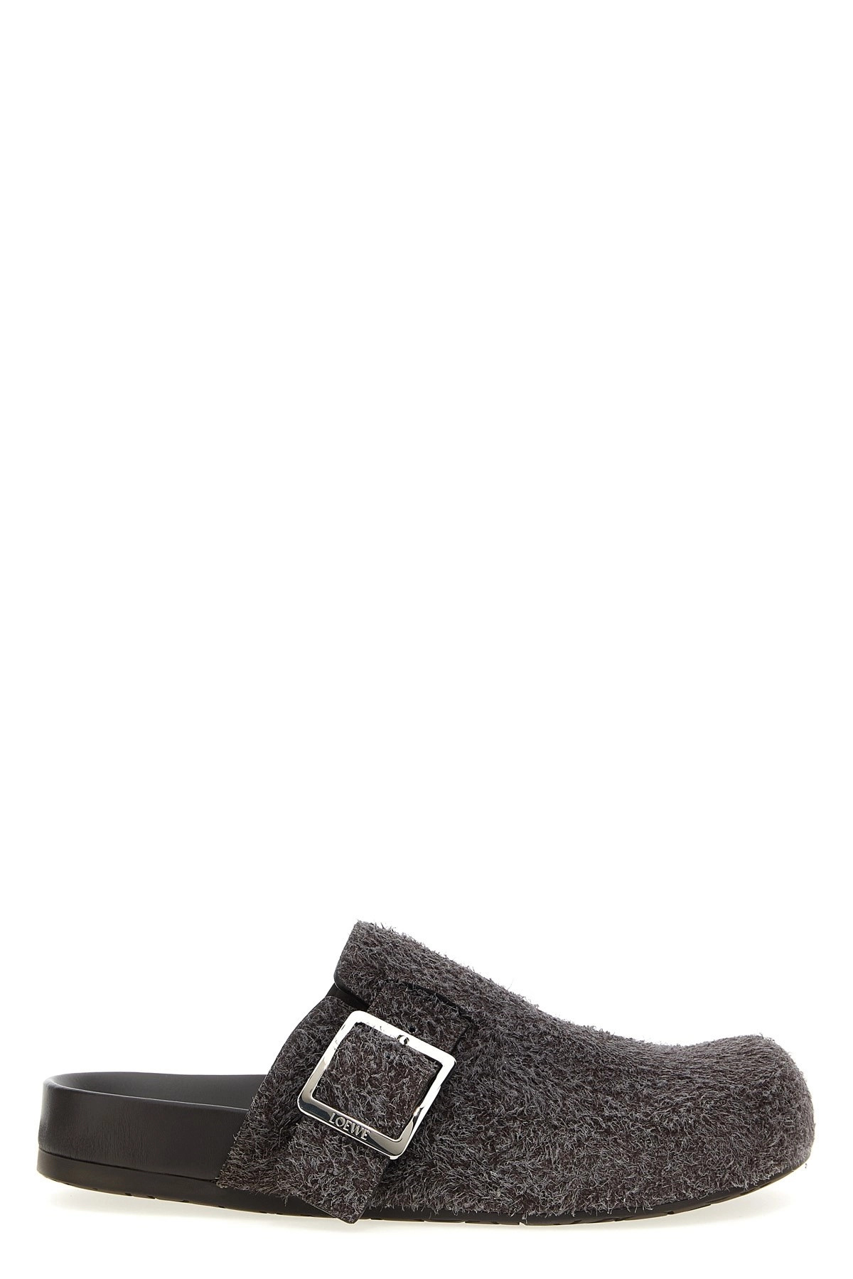 cod. M816V29X123110 'Ease Buckle' brushed suede sabots, adjustable strap with iconic square buckle, ergonomic contoured leather footbed, rubber sole. Color: Brown Size & Fit: EU MEN Composition: 100% calfskin leather (Bos Taurus) Made in: Italy