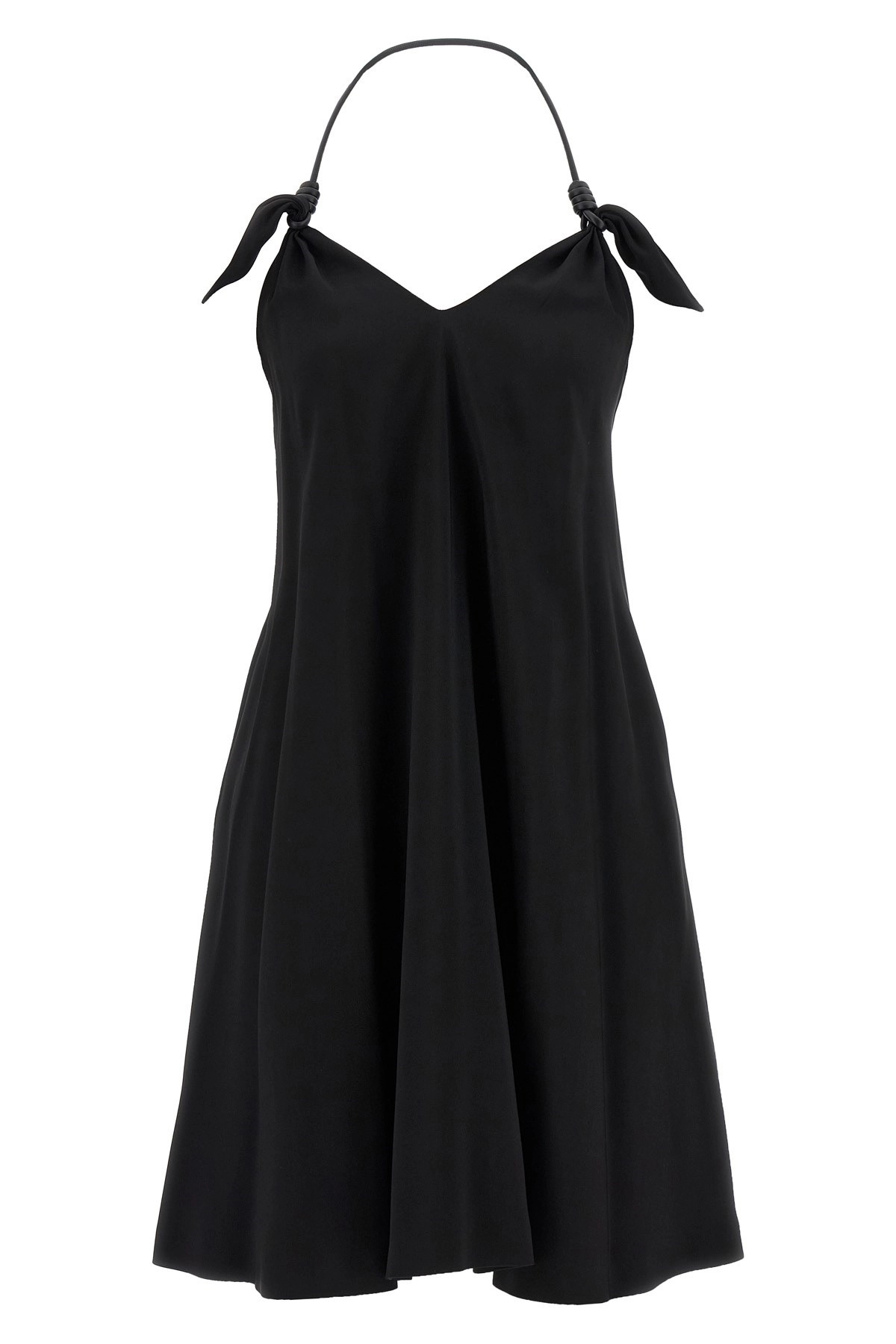 cod. S359Y09XH41100 'Flamenco' dress in medium-weight stretch viscose cady, American neckline with leather lace and knot detail, sleeveless, deep round back neckline, pockets, lining. Color: Black Size & Fit: true to size fit FRENCH size Composition: 91% viscose 5% lh 4% ea Made in: Italy